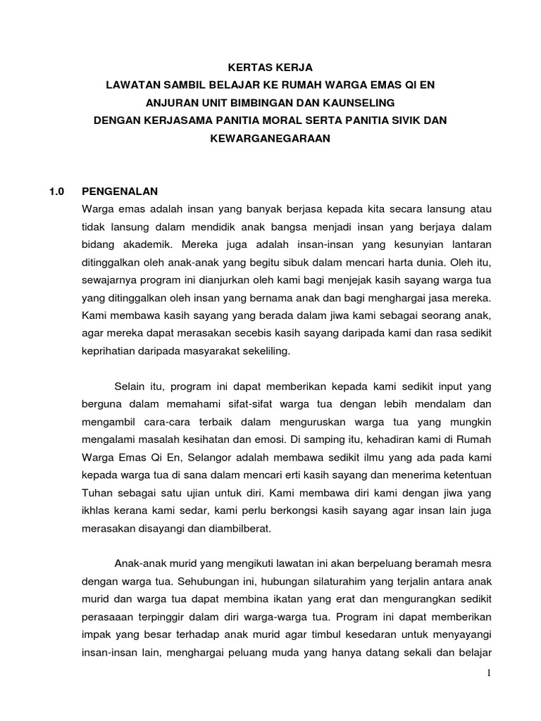 Contoh Kertas Kerja Lawatan Ke Rumah Orang Tua
